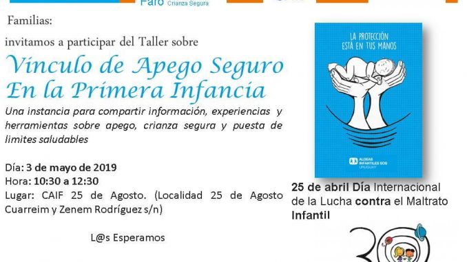 Mañana viernes 3 de mayo se estará desarrollando el Taller sobre «Vínculo de Apego Seguro en la Primera Infancia» en el CAIF 25 de Agosto.