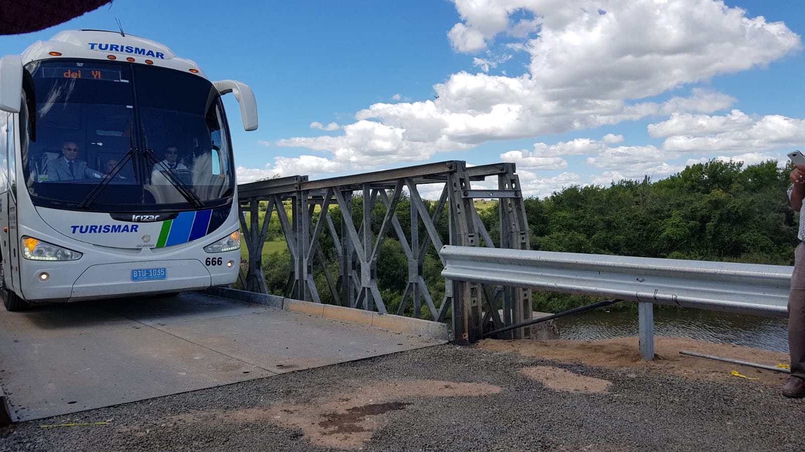 Este martes quedó habilitado el uso del puente provisorio sobre el arroyo Agua Sucia, en Sarandí del Yí. Se trata de una medida provisoria para reactivar la circulación de quienes viven en la localidad duraznense y Capilla del Sauce, luego de que el pasado 10 de enero un camión impactara contra el puente ubicado en ruta 6.
