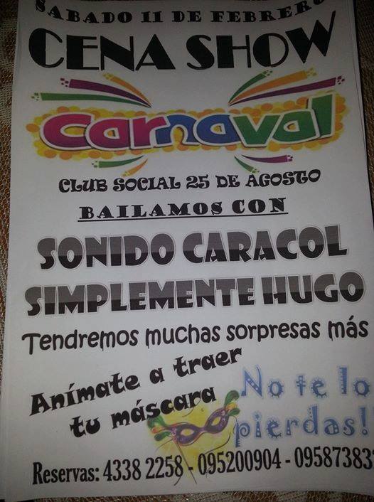 Este sábado 11 de febrero habrá Cena Show de Carnaval en el Club Social 25 de Agosto, que tendrá la presencia de Simplemente Hugo, Sonido […]